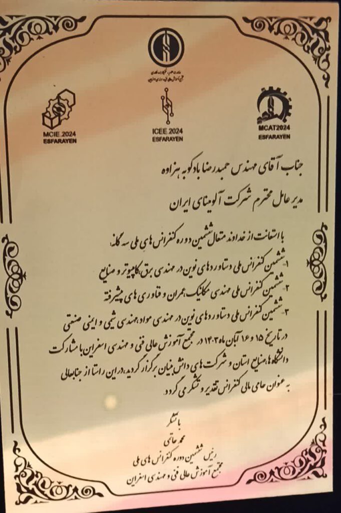 🔹 ششمین دوره کنفرانسهای ملی مجتمع آموزش عالی فنی و مهندسی اسفراین با حضور فعال شرکت آلومینای ایران به کار خود پایان داد.