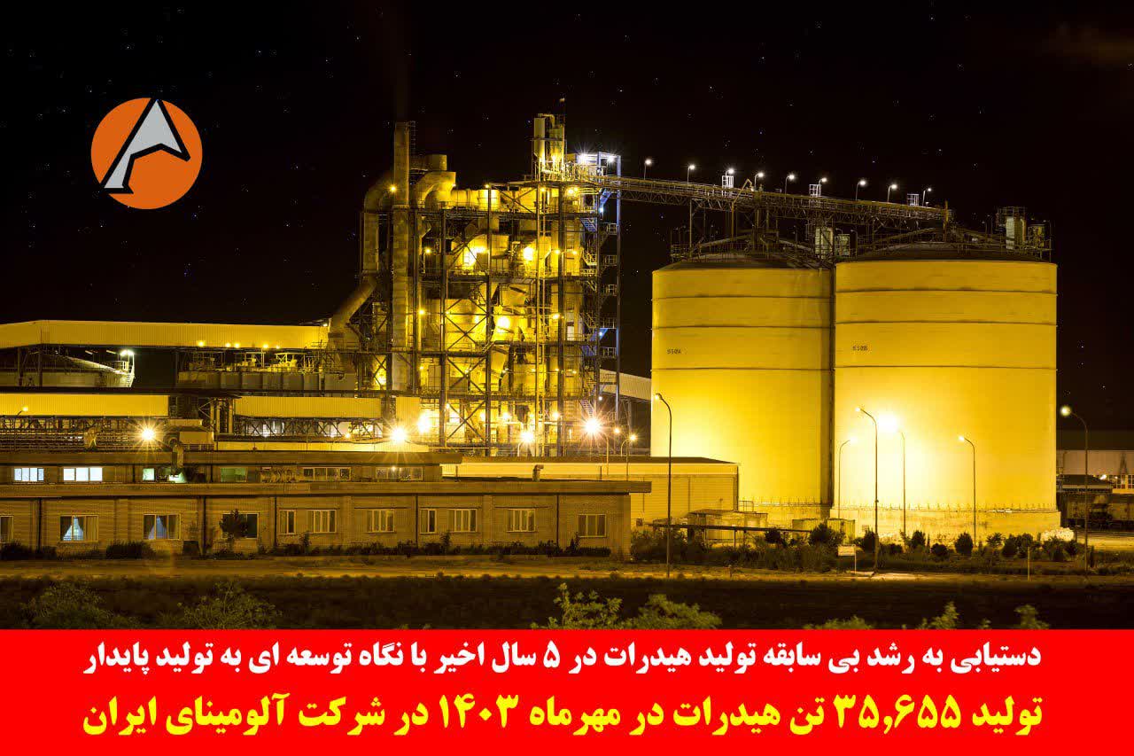دستیابی به رشد بی سابقه تولید هیدرات در ۵ سال اخیر با نگاه توسعه ای به تولید پایدار: تولید 35.655 تن هیدرات در مهرماه 1403 در شرکت آلومینای ایران