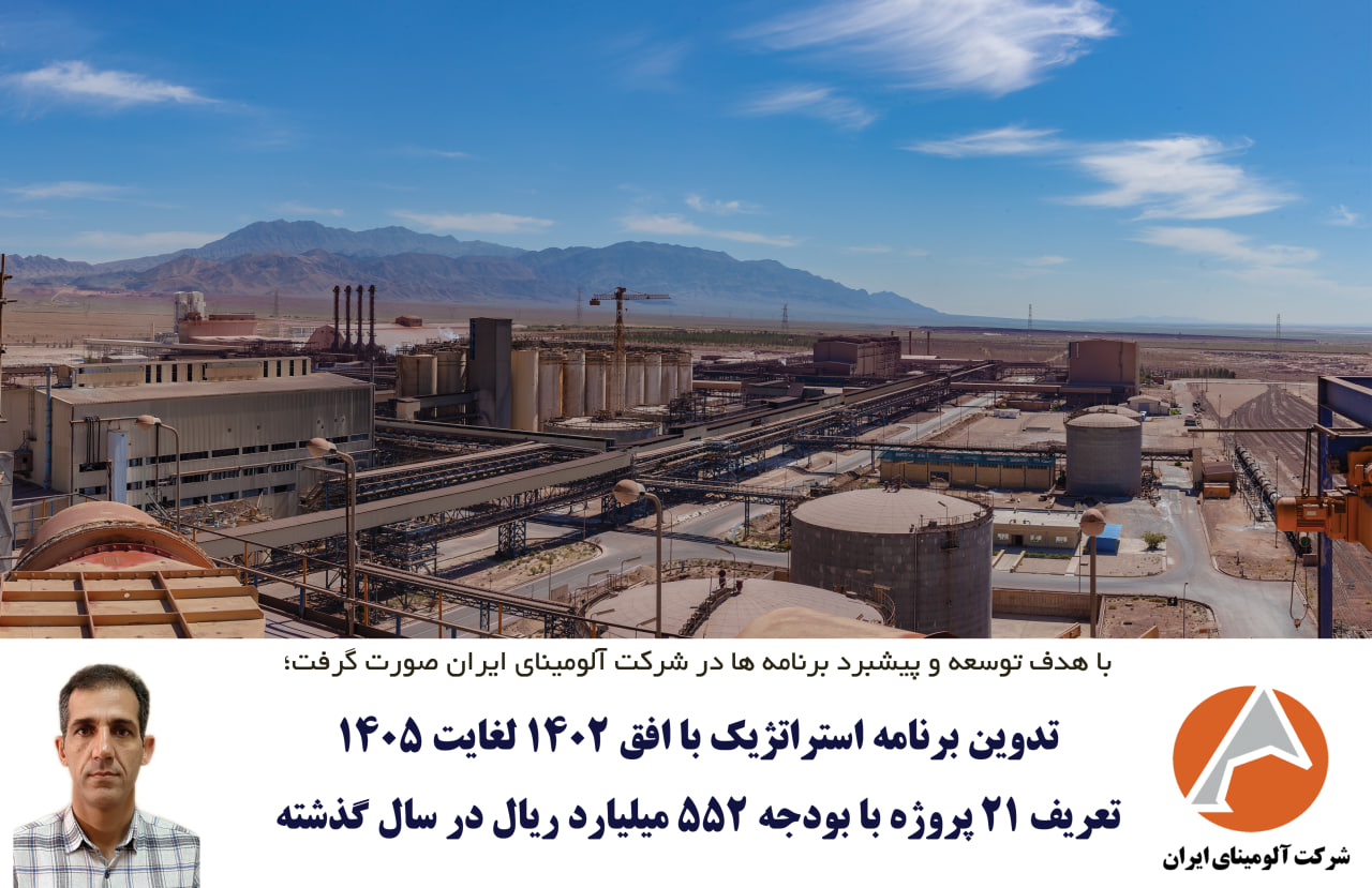 با هدف توسعه و پیشبرد برنامه ها در شرکت آلومینای ایران صورت گرفت؛تدوین برنامه استراتژیک با افق ۱۴۰۲ لغایت ۱۴۰۵تعریف ۲۱ پروژه با بودجه ۵۵۲ میلیارد ریال در سال گذشته