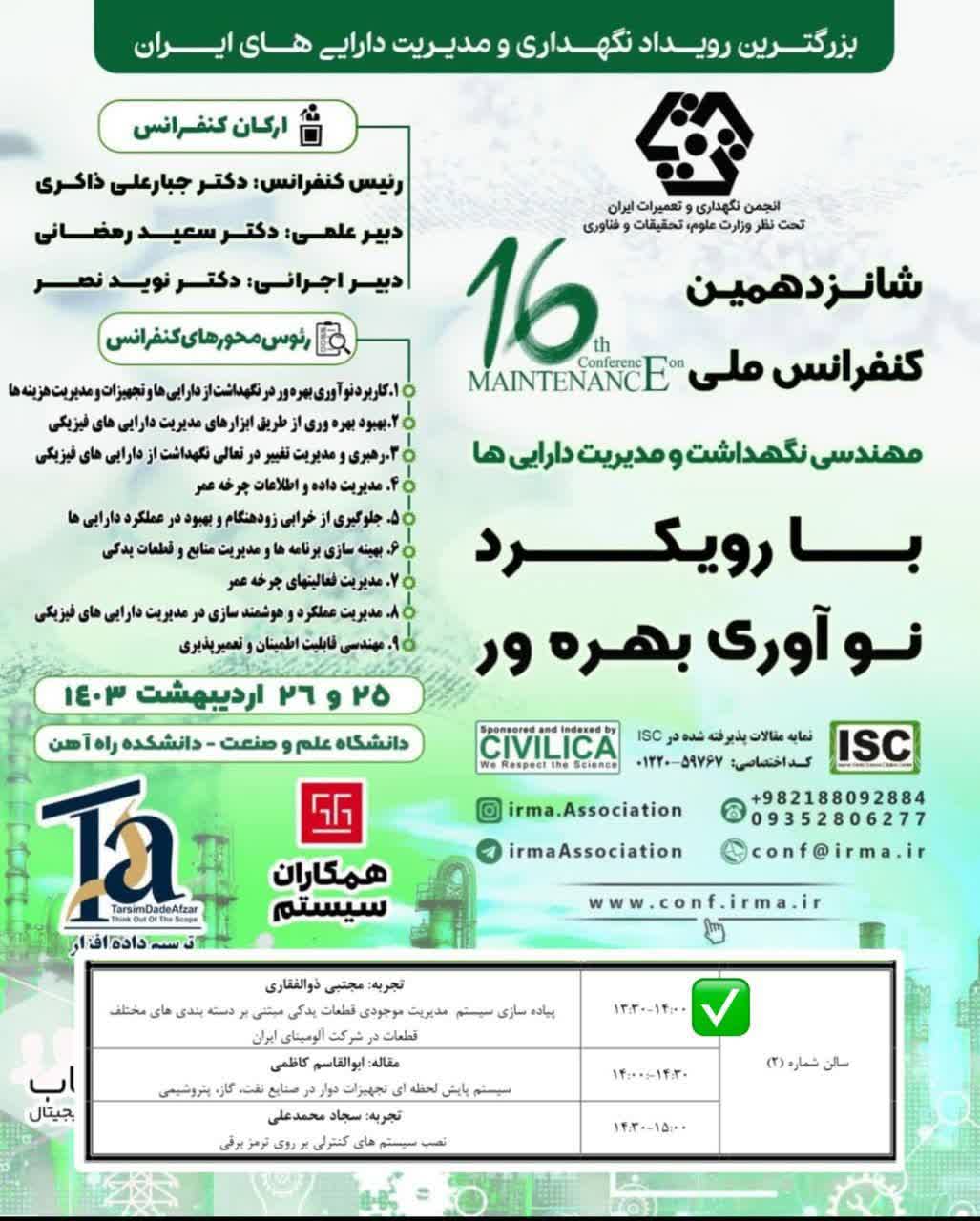 ارائه مقالات پژوهشی توسط متخصصان شرکت آلومینای ایران در شانزدهمین کنفرانس ملی نگهداشت و مدیریت دارایی ها