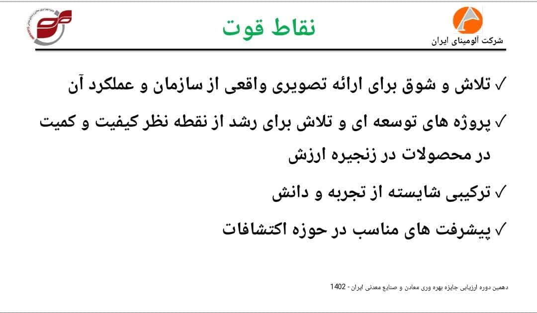 🔵پایان فرآیند ارزیابی دهمین دوره جایزه بهره وری معادن و صنایع معدنی شرکت آلومینای ایران